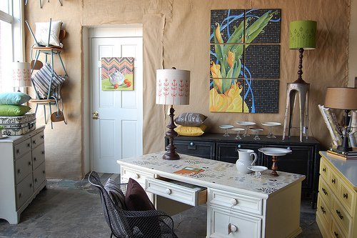 My decorating obsessions always ebb and flow. I go through rounds of wanting to redecorate everything, tear the whole house apart and redo it all. Maybe its part of this "nesting" thing that goes with getting married? Hmmmm... Anyway, I have been spending time getting ideas for beautiful, inexpensive DIY projects I can sink my crafty little teeth into. In my design inspiration travels, I always check in with Design Sponge, and her awesome "Before & After" section. As it happens, going through all these posts led me to Knack Studios. This little Greenville, South Carolina Treasure is aaaaaaaaamazing! Specializing in refinishing and refurbishing, they create beautiful, functional pieces out of what some might consider garbage. I am going to try to tackle our bedside tables this weekend- they are dying for a new coat of paint and some cute knobs. And thanks to Knack Studios, I now have a ton of great ideas for them, and many other projects. Check out their website (here) and Flickr Photos (here) and get inspired!