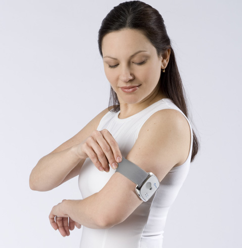 Meet my new Body Media Armband. The hubs discovered these nifty little gadgets at his work- where literally everyone has one. So, not wanting to be the nerdy kid without a doohicky strapped to his arm, he bought us each one. This little guy monitors your calories burned, steps taken & even sleep patterns. Then you enter all you eat in your online food diary. All these things in combination let you know if you need to be walking more, eating less, working out more and sleeping more. Neat huh? I'm loving it already!
