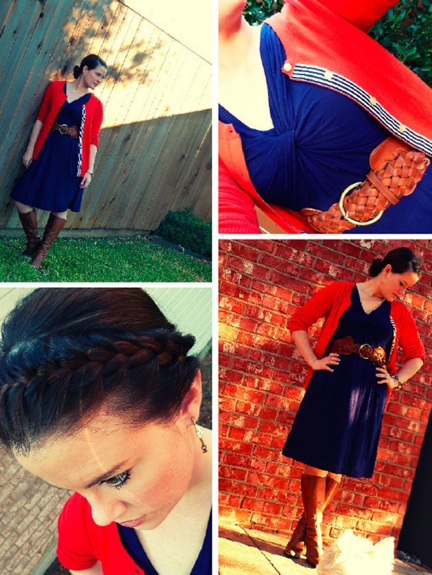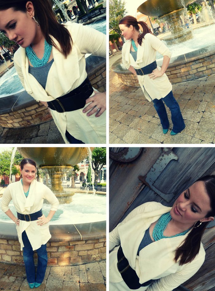 Hi guys! Happy Thursday! Today is my Friday cause I have tomorrow off. Thank goodness, cause I am sick again. Dang. At least its not strep throat this time- just a little cold. But, being the good little remixer I am, I slapped on some Vicks, downed some Dayquil and put on my Day 10 Outfit. I call this one "Whatever" cause it was pretty much everything that was hung together, and the red belt was on top of the pile. I rolled my jeans a la' J. Crew catalog and I was out the door. We're a third of the way there folks- here's where it starts to get tough.