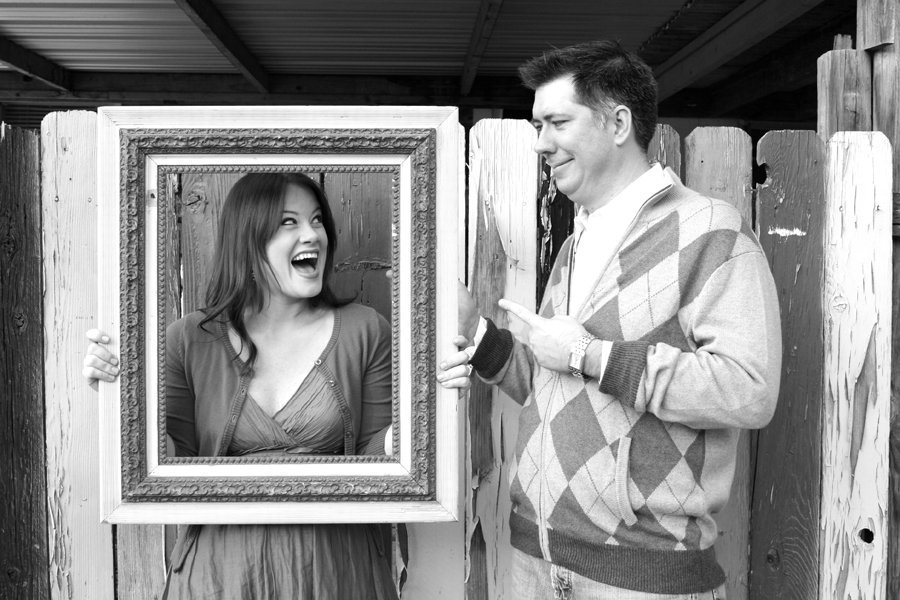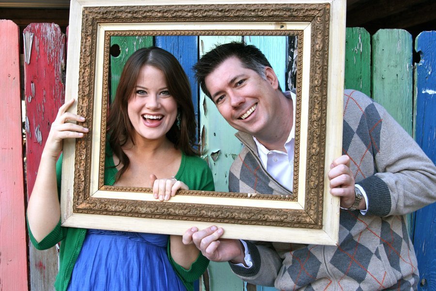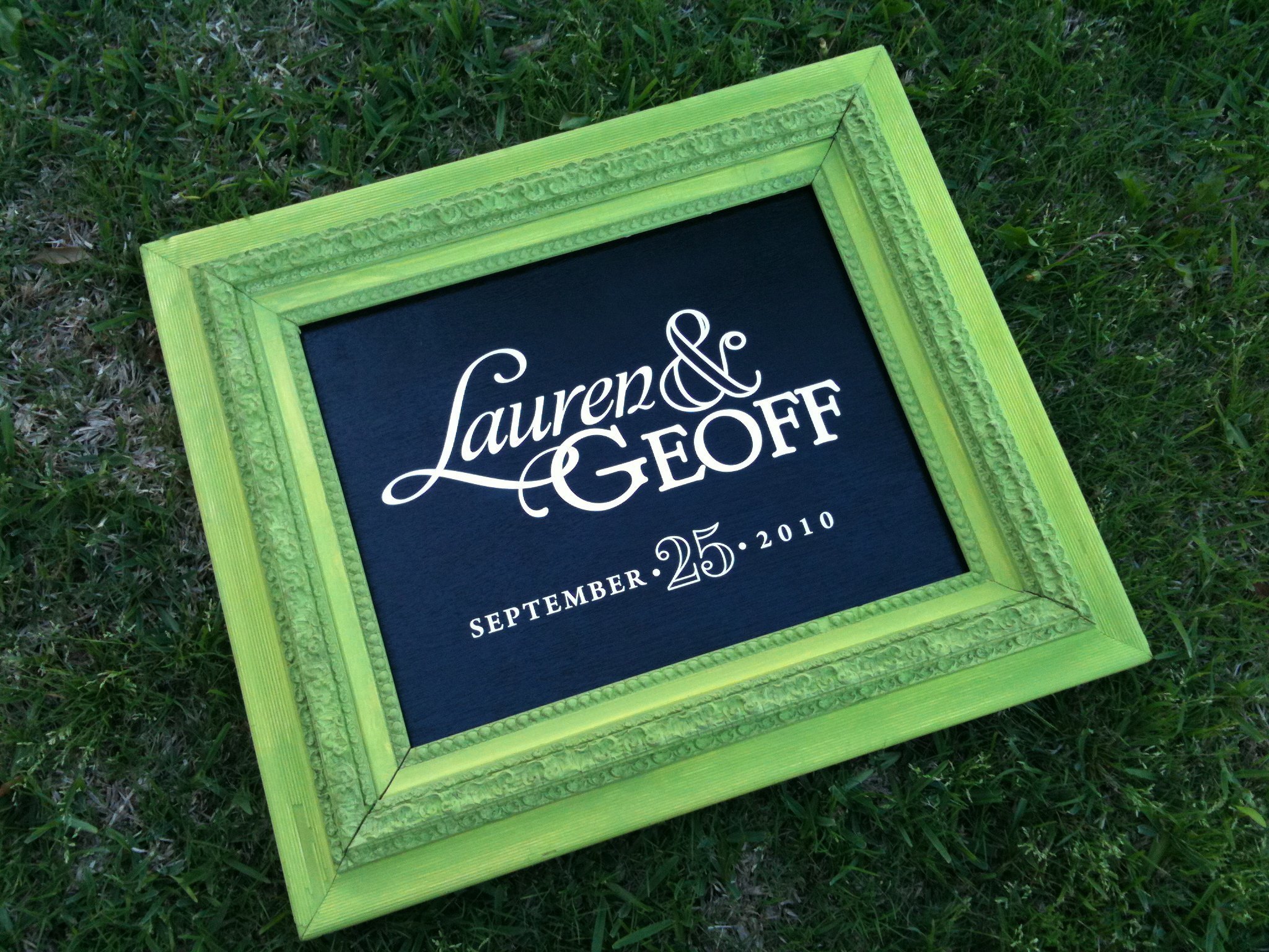 Good morning! Its Wednesday- yay! Only one more day till Geoff comes home from his business trip. I hate it when he leaves, but in one way its good because I get soooooo much stuff done. When he's home, I'd rather be hanging out with him than doing chores! So I cleaned the house from top to bottom and got some wedding stuff done. I am super excited about the Wedding Welcome Sign I finished last night! I took the antique frame we used in our engagement photos (see below) and repurposed it. I wanted a cute sign to hang on the white picket fence outside our wedding venue to welcome guests as they arrive (and let them know they are in the right spot.) Scroll down to see the step-by-step directions and the final product! Adorable!