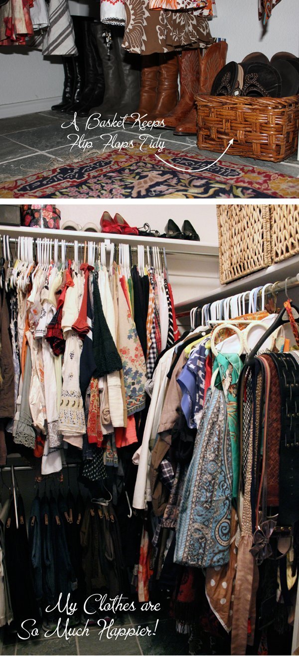 5. I used a basket to hold all my flip flops so they don't get scattered all over