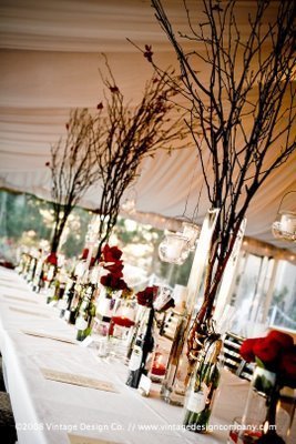 02.2.2010 I have decided that wedding flowers can be tricky. All the brides that have already planned a wedding are rolling their eyes with a big fat "duh" right now, but I guess every bride has to figure out things for herself, right? So the on my mind right now is all things floral. First, flowers are expensive. Seriously. And I just can't wrap my head around dropping a house payment on stuff that will die in a week. Plus, I have never been a "traditional flower" kinda girl- I like bright neon greens, berries, and asymmetrical arrangements. So, I have decided we are going to use branches, twigs, & berries along with flowers in our wedding centerpieces. I love how organic and not-too-fussy they look, and they are both budget friendly and perfect for our venue (an outdoorsy 1700's Barn with an authentic thatched roof.) Check out some of my inspiration below.