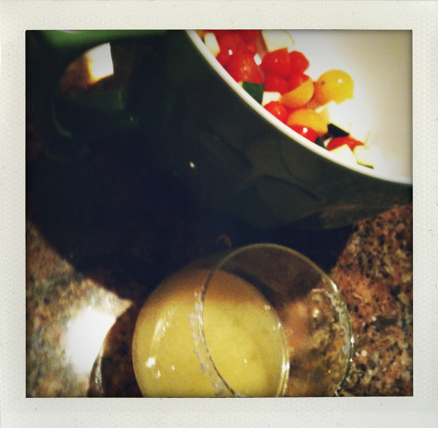 We have been enjoying our produce all week-and decided to celebrate Cinco de Mayo with a traditional... Italian feast. Weird right? Well, we had mexican last night. And I wanted to make a pizza recipe I found with peaches. And our peaches won't be good much longer. And at least I had a margarita to celebrate.